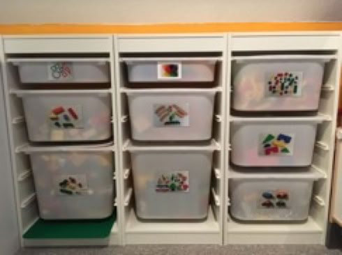 Vielseitiges und regelmäßig wechselndes Spielmaterial, Bilderbücher und Spiele sowie alles Nötige für das kreative Gestalten sind für die Kinder frei zugänglich.